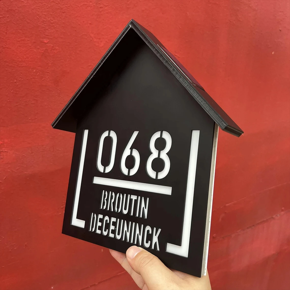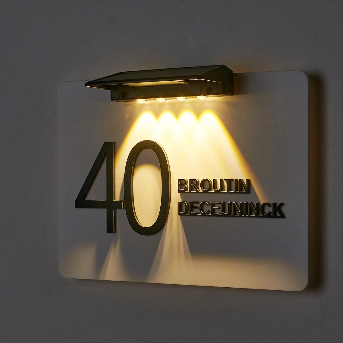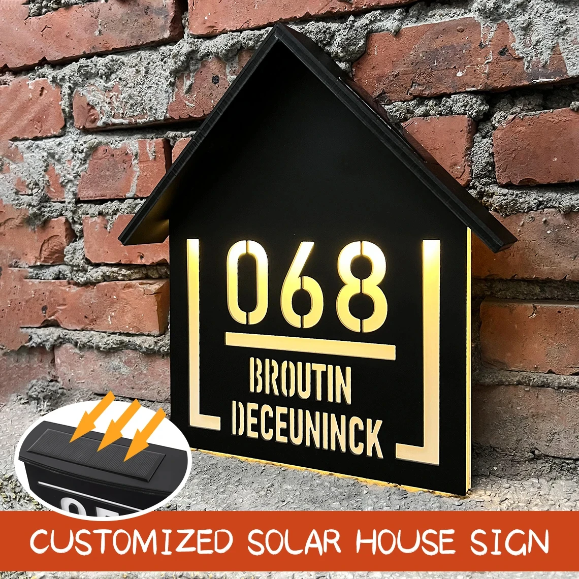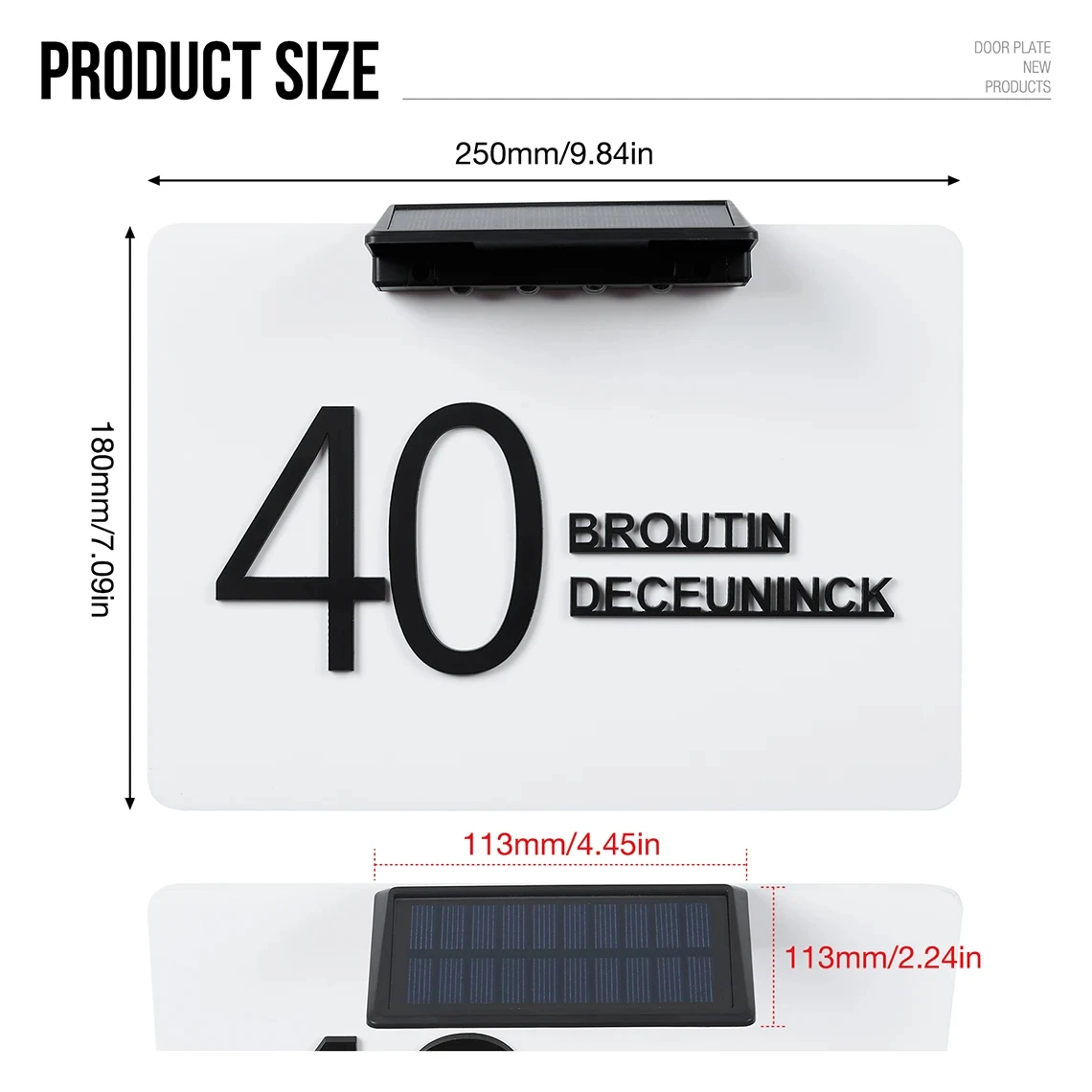 Customized Outdoor Solar House Sign LED Illuminated Laser Cut Acrylic House Numbers Personalized Exterior Family Address Sign